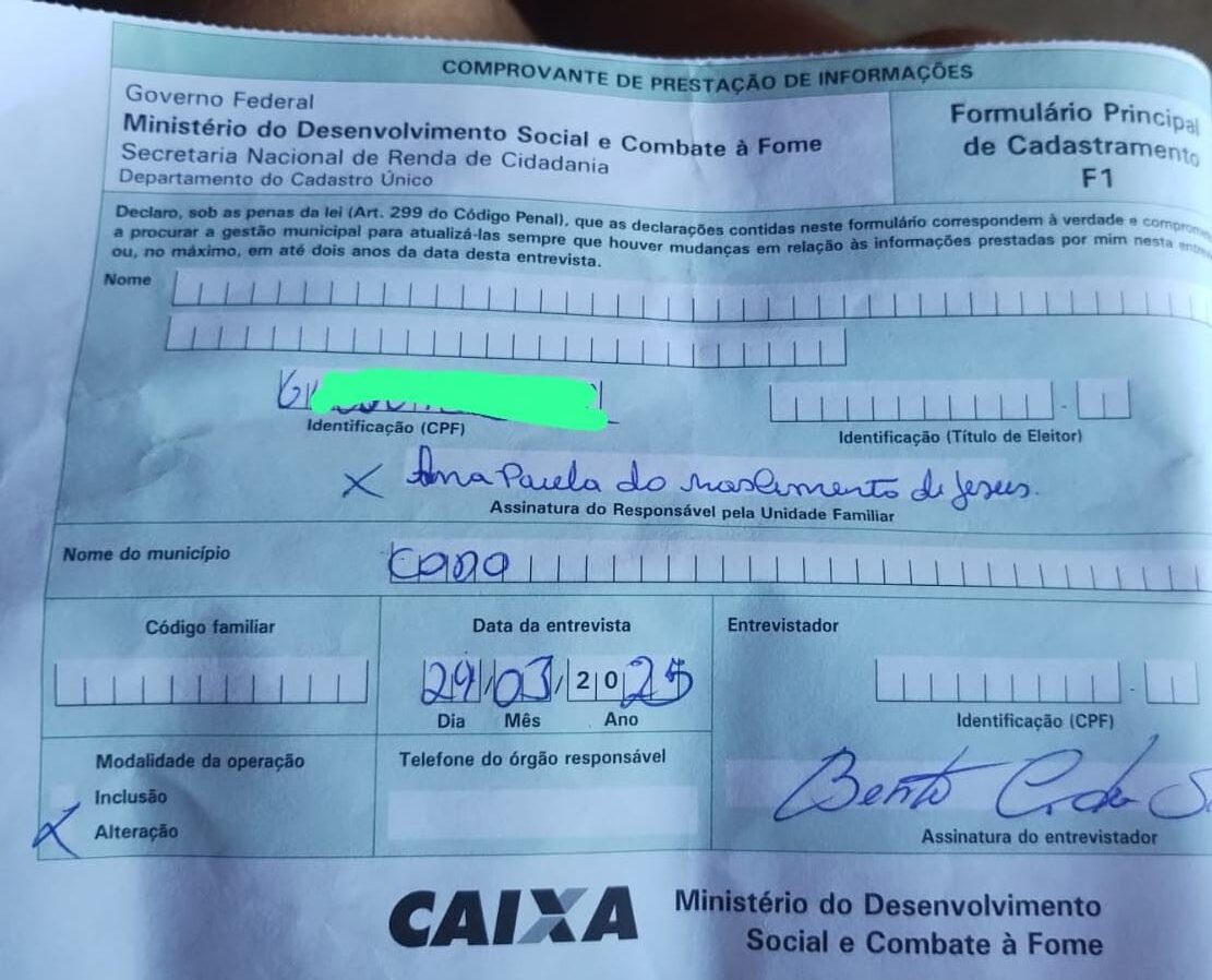 Ana Paula relata que, mesmo tendo cumprido o prazo e ido pessoalmente à secretaria realizar a atualização exigida pelo programa, foi surpreendida agora, em junho, com a notícia de que o cadastro não foi inserido no sistema — resultando no bloqueio do benefício.