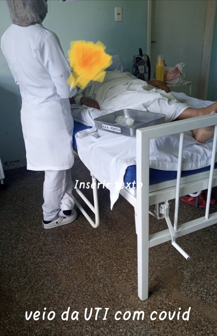 Minha Vó se encontra internanda, desde terca feira 13/04/2021. No quarto onde ela se encontra ela e mais tres pacientes que nao tem nava haver com covid, ja fica do lado do quarto dos pacientes que estão se recuperando da covid. Ai hoje trouxeram uma paciente vindo da uti pois a mesma contraiu o COVID e que por Deus nao veio a obito, mais colocaram ela no mesmo quarto junto com outros idosos que nao tem nada haver com covid. Sendo que o hospital tem varios quartos desoucupados onde podiam colocar essa senhora” Disse ela.