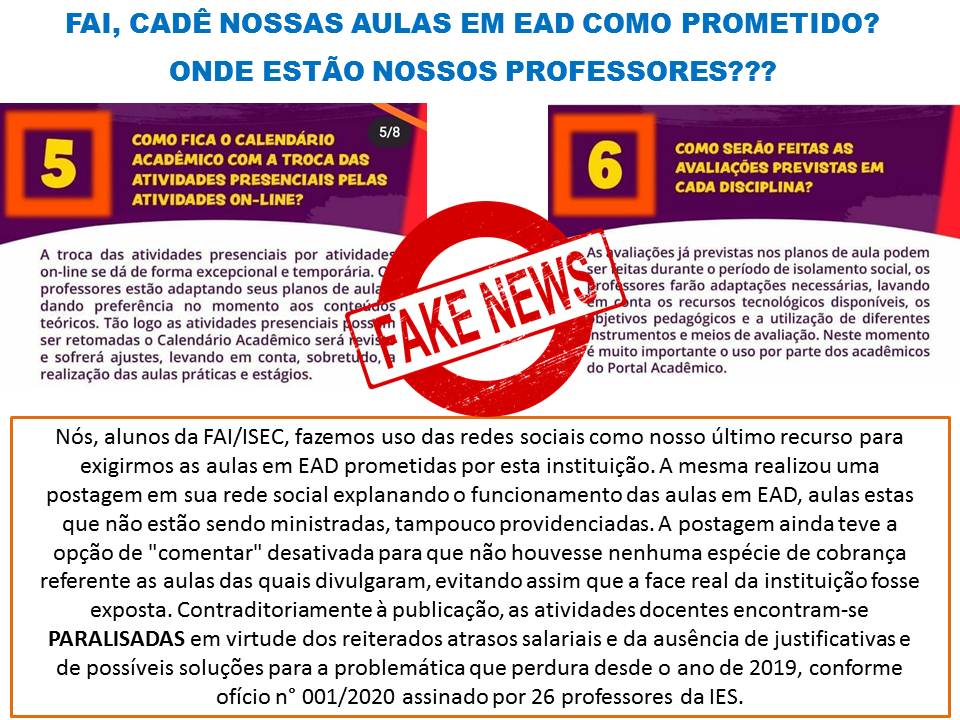 FACULDADE FAI EM CAXIAS NÃO PAGA SALÁRIO DE PROFESSORES DESDE DEZEMBRO DE 2019 E POR CONTA DISSO TODOS OS ALUNOS ESTÃO PREJUDICADOS E DEVEM PERDER O PERÍODO.