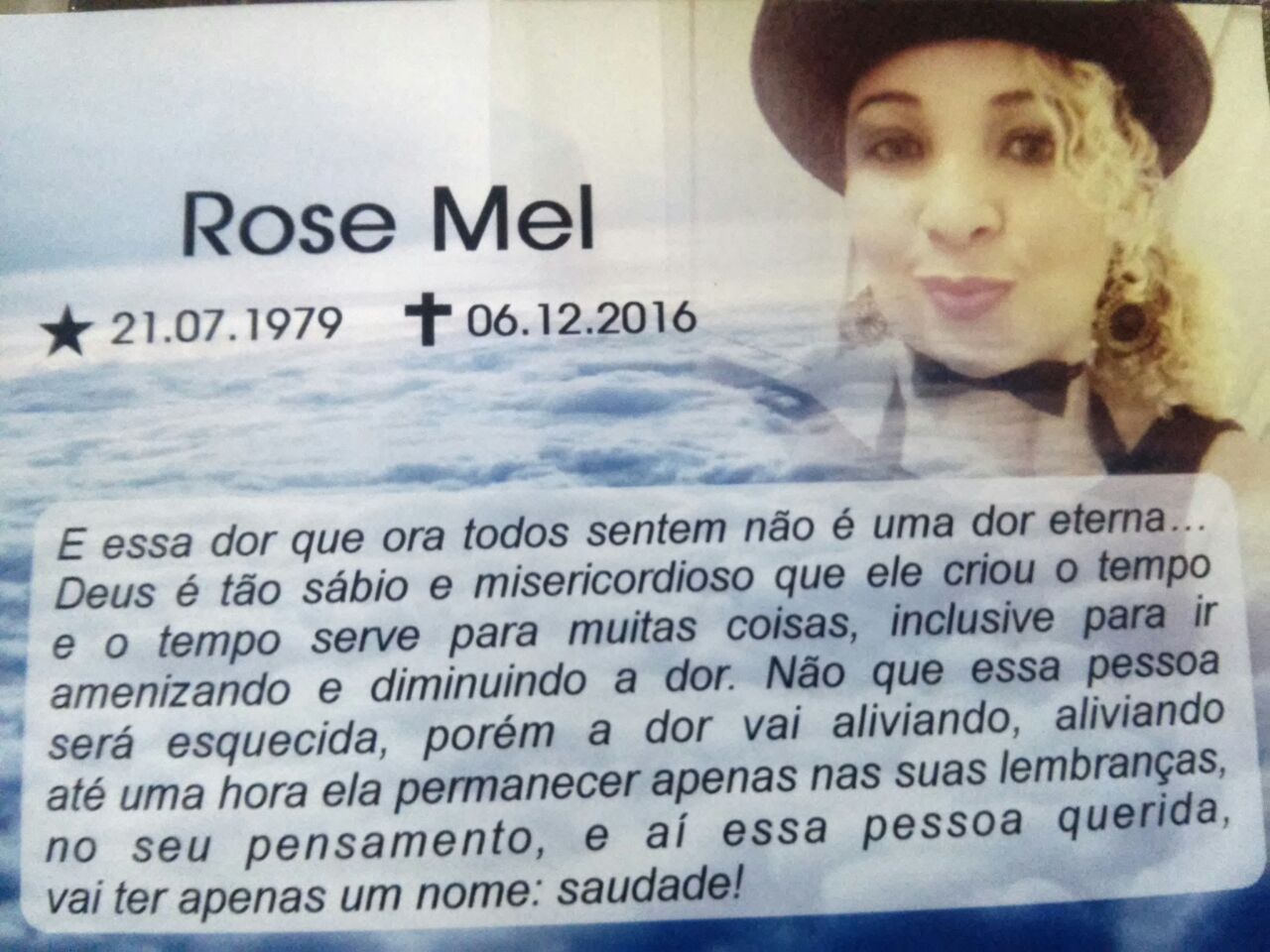 FOI REALIZADO HOJE A MISSA DE 15 DIAS DA SAUDOSA ROSE MEL EX VOCALISTA DA BANDA FRUTA NATIVA