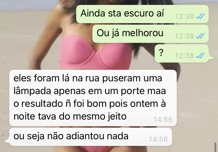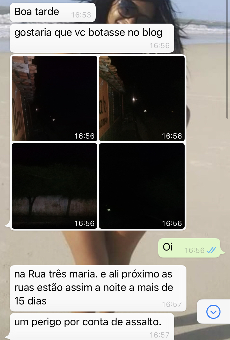Uma das moradoras é da rua Manoel Januário, ela afirma que a escuridão é total, eles ligam no setor de iluminação pública e não são atendidos. A moradora disse que os assaltos são constantes devido a escuridão, ninguém pode mais sentar na porta de casa.