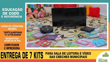 A Secretaria Municipal de Educação realizou a entrega de kits para as salas de leitura, áudio e vídeo de escolas da educação infantil. Ao todo sete escolas foram contempladas com os kits, que são compostos por: livros de literatura infantil, tapete a almofadas, TV LCD 32 polegadas, microsystem, e aparelho de DVD, além de computador e impressora.