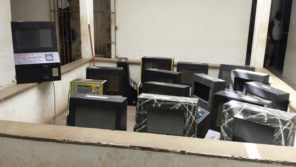 Foram apreendidas 21 (vinte e uma) máquinas caça níquel, R$ 1.402,00 (um mil, quatrocentos e dois reais), em espécie, e conduzidos à Delegacia de Polícia Civil quatro pessoas, proprietários dos estabelecimentos onde estavam instaladas as máquinas