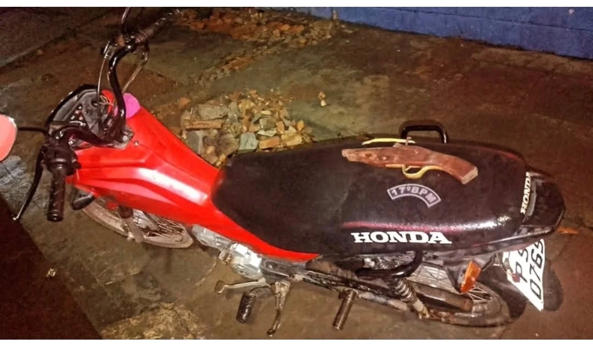 Durante a abordagem, os policiais constataram que a motocicleta, uma Honda Pop de cor vermelha e placa PSP-0769, era o veículo roubado. O condutor foi identificado como Vitor Gabriel Sousa da Silva, de 30 anos,enquanto o passageiro, um adolescente de 15 anos, estava em posse de uma arma de fabricação caseira do tipo garruncha.