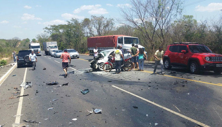Uma colisão frontal ocorrida, por volta do meio-dia desta quinta-feira (1º), entre dois veículos no km 604 da rodovia BR-316, no trecho entre as cidades de Caxias e Timon, resultou, de imediato, nas mortes de três pessoas que estavam em um VW/Voyage que se chocou com uma Toyota/Hilux, de cor preta, com placas OIC-9268, Capitão Poço-PA.