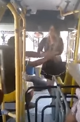 Uma policial Civil aborda um cidadão dentro do ônibus e pede para revistá-lo, mas ela aparentemente não se contenta com isso, pede então para poder olhar a carteira do senhor.